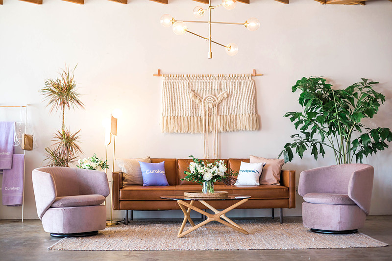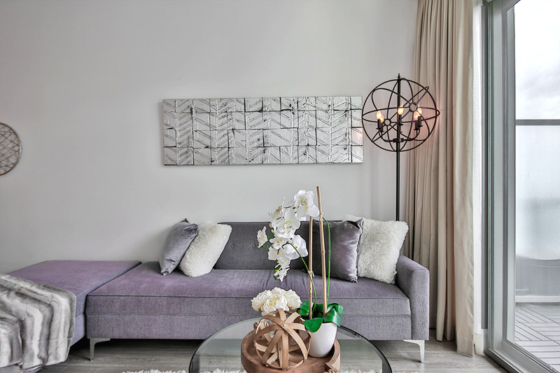 보라 계열의 소파도 독특하고 좋네요. 노출 콘크리트 마감에 비슷한 결의 느낌이 드는 액자는 멋스러움을 더하네요