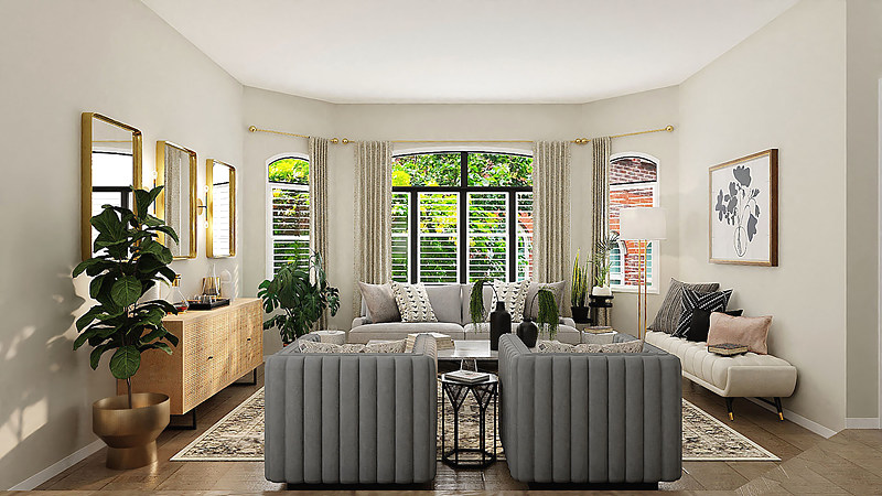 소파의 좌우에 배치하는 방식은 인테리어로 화분을 놓을 때 가장 기본이 되는 스타일입니다.