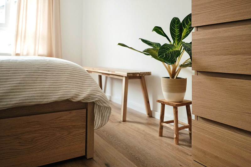 반려식물의 키가 너무 낮으면 스툴을 이용해서 조금 높여주는 방식도 괜찮습니다. 침대보다 낮으면 실수로 치고 지나가기도 쉽죠. 올려놓은 필요가 있습니다.