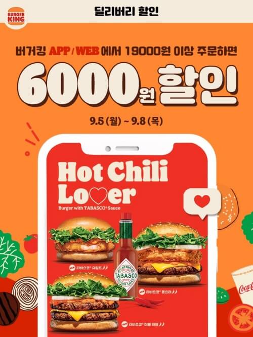 - 딜리버리 6천원 할인: 버거킹 웹이나 앱에서 할인