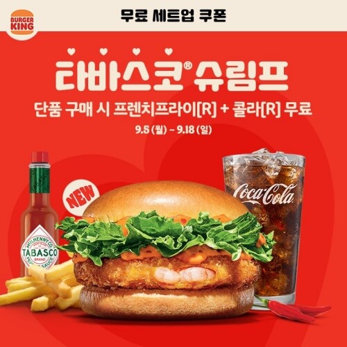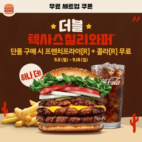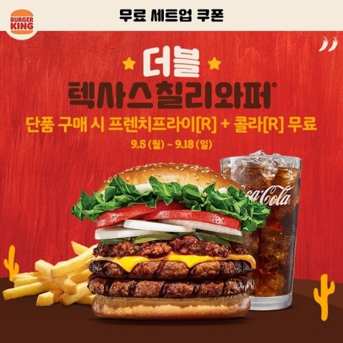 - 텍사스칠리 와퍼 세트업 : 쿠폰 필요없이 매장에서 무료 세트업