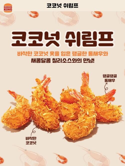 기타 메뉴 프로모션으로 코코넛 쉬림프를 홍보하고 있습니다. 한 번 드셔 보시는 것도 나쁘지 않아요.