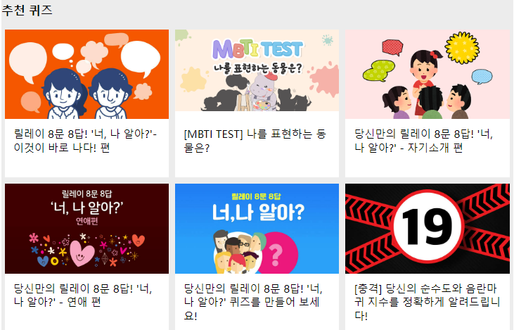 위와 같이 재미있는 퀴즈들이 많이 있으니, 하나씩 해 보면서 내가 어떤 사람인지 확인해 보시는 것도 좋지 않을까요?